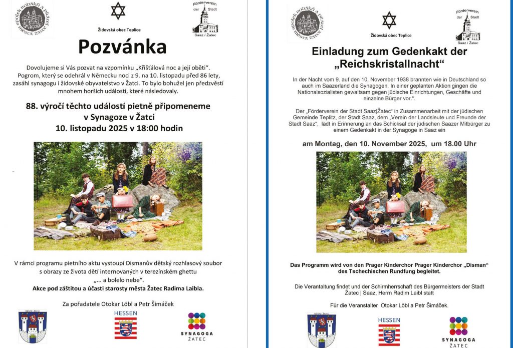 Die Gedenkfeier, organisiert vom Förderverein der Stadt Saaz | Žatec, Heimatkreis Saaz und der Stadt Saaz, begann um 15 Uhr mit einem Besuch des jüdischen Friedhofs in Saaz, wo der der Holocaust-Opfer gedacht und die Gäste von Michal Lichtenstein, den Vorsitzenden der jüdischen Gemeinde begrüßt wurden. Nach einen Todesgebet wurden Blumen und Steine niedergelegt.