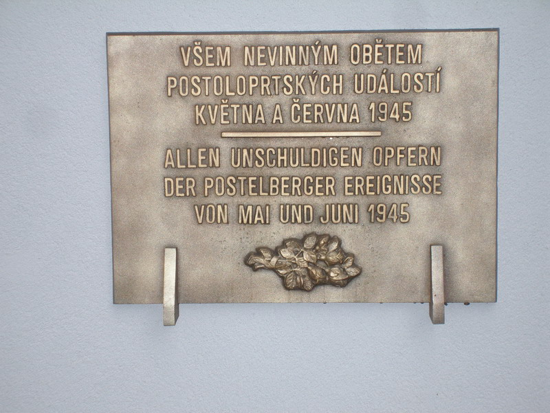 Im nordböhmischen Postelberg (Postoloprty) erinnert eine Gedenktafel an die dort nach Kriegsende ermordeten Deutschen aus Saaz / ARD und ZDF berichteten ausführlich in den Abendnachrichten